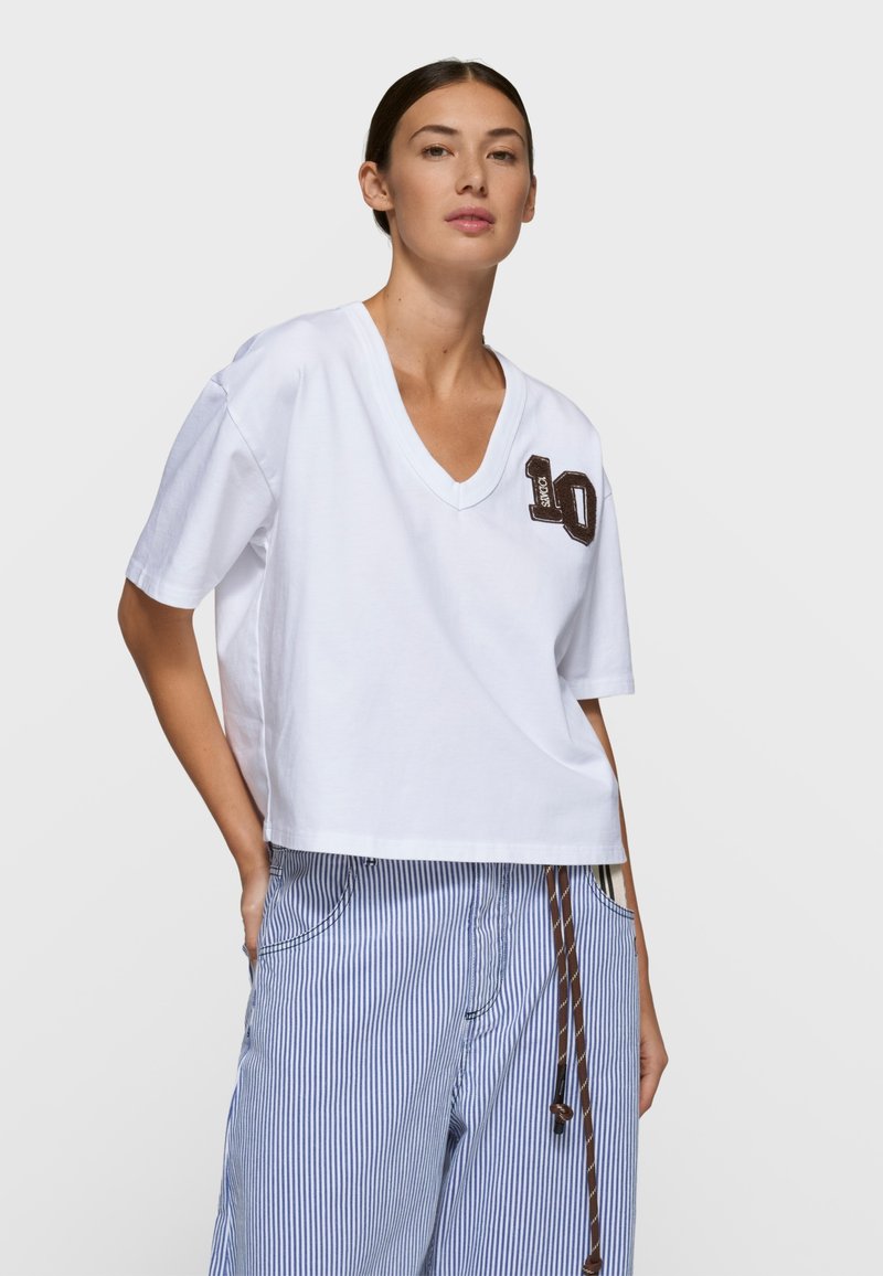 THICK V-NECK TEE - Camiseta estampada - white