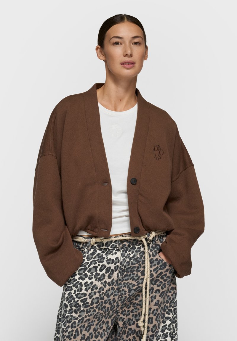 CROPPED BASEBALL - Chaqueta de punto - dark truffle