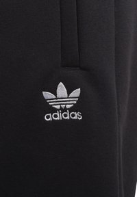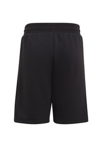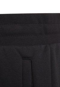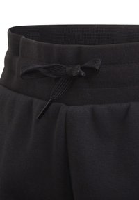 Pantalones cortos de algodón negros con cintura elástica y cordón. Presenta bolsillos laterales y un pequeño logo blanco en el muslo izquierdo.