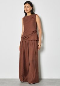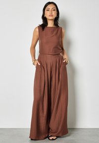 TEXTURED WIDE-LEG - Pantalones - brown