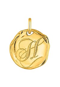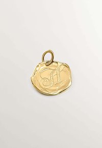 Top verde de un solo hombro con ribete azul, hecho de una tela suave. Se lleva con un collar de cuentas multicolor que presenta un encanto dorado.