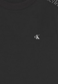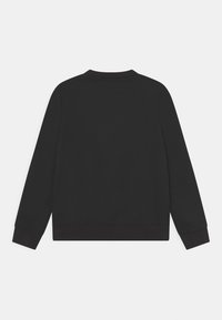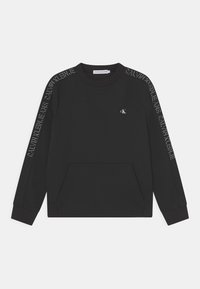 Sudadera negra de manga larga, con un bolsillo frontal, puños de canalé y acentos de logotipo a lo largo de las mangas. Fabricada con tejido suave.