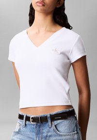 LABEL V NECK TEE - Camiseta básica - bright white