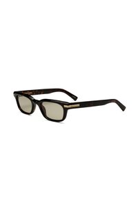 Gafas de sol rectangulares negras con lentes de tono oscuro y patillas gruesas, mostradas en ángulo sobre un fondo blanco.