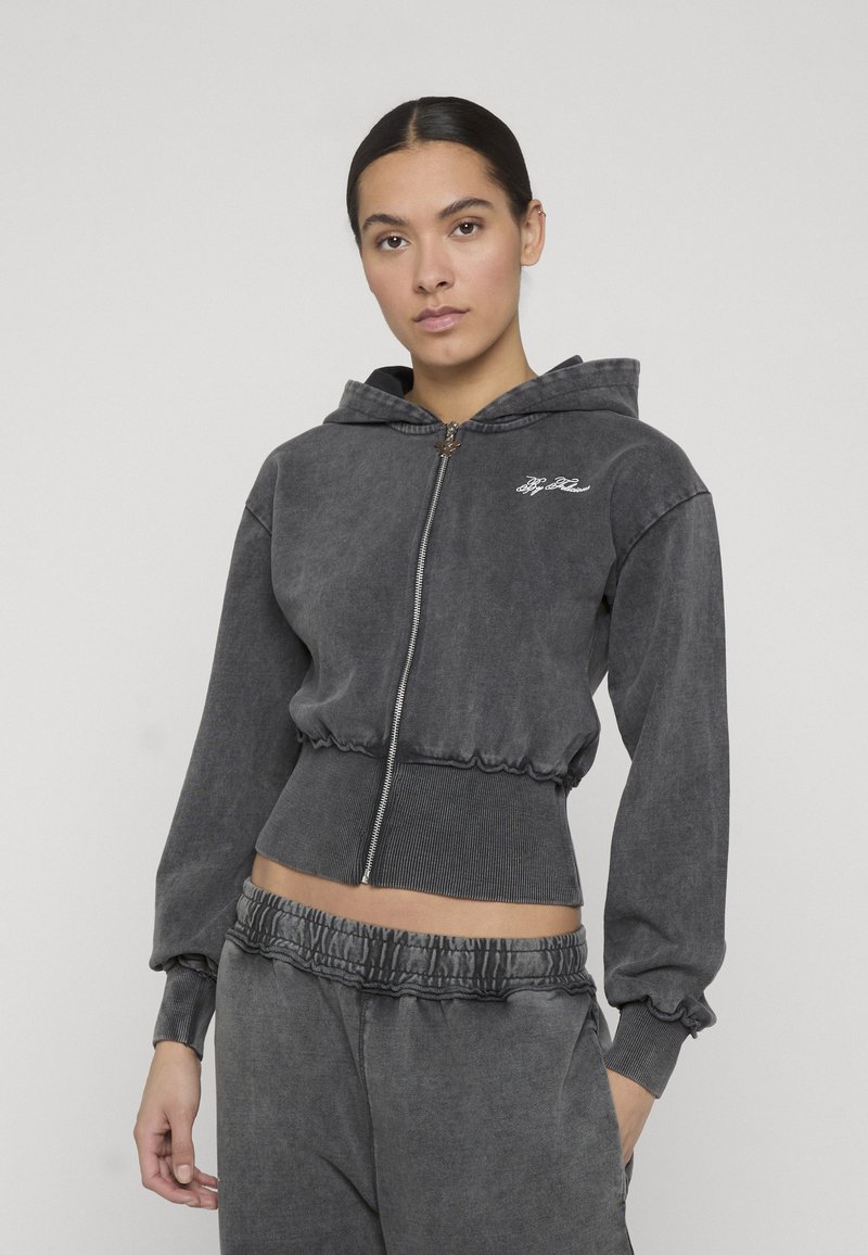 WASHED CROPPED SWEAT JACKET - Jersey con capucha - black