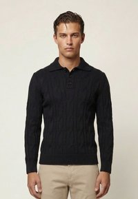 FELIX HARDY MENS POLO COLLAR BASIC PULLOVER - Jersey de punto - black