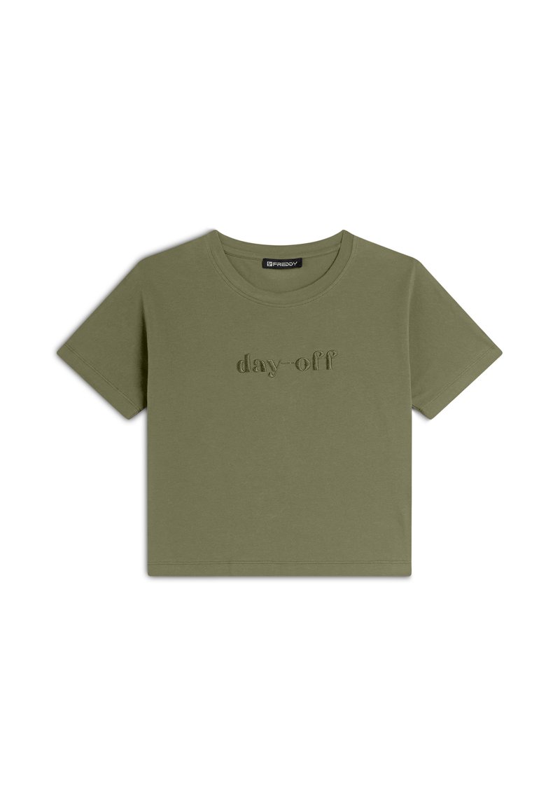 CROPPED GIROCOLLO COMFORT CON RICAMO - Camiseta estampada - oil green