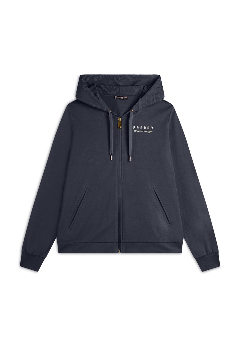 CON CAPPUCCIO E DETTAGLI FLOREALI - Sudadera con cremallera - blu navy allover ikat blu