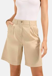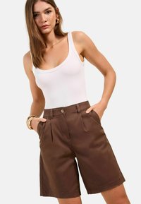 REGULAR FIT - PLEATED CHINO BERMUDA SHORTS . - Shorts - chocolate brown