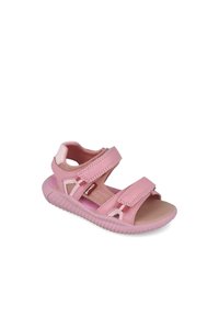 Sandalias rosas con correas ajustables, hechas de material sintético. Presentan una suela texturizada, diseño de punta abierta y una plantilla acolchada para mayor comodidad.