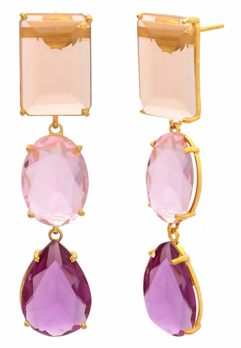 TURMALIN ROSENQUARZ UND AMETHYST TROPFEN - Pendientes - gold coloured