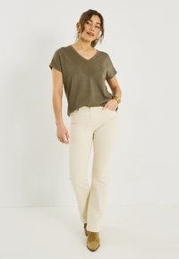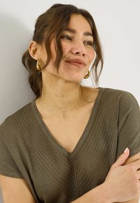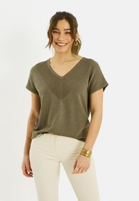 PULL BRILLANT MANCHES COURTES - Camiseta estampada - kaki