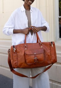 Al gimnasio, a la estación de tren o al aeropuerto: ¡con "Harvey" siempre estarás listo para su próxima aventura!¿Te gustaría ir a la playa el fin de semana con tu familia? ¿O prefieres hacer un pequeño viaje por la ciudad con tus amigos más cercanos? No hay problema: ya sea para tu próximo gran viaje al extranjero o para un viaje de fin de semana a la playa,"Harvey" es siempre la elección correcta y un fiel compañero en todos tus viajes.El bolso de viaje decuero de cabra de curtido vegetal no sólo se destaca por su diseño clásico y atemporal, sino que también convence por su capacidad, comodidad de transporte y amplitud. Hayespacio para tu ropa y tus zapatos, así como para tu libro favorito o incluso para un ordenador portátil de 13". También hay unbolsillo de parche en la parte delantera donde puedes guardar cosas como llaves, pañuelos, un pequeño botiquín de emergencia y mucho más. El cierre de hebilla dá a "Harvey"el atractivo encanto de una bolsa de viaje vintage sin tener que renunciar a las ventajas de las bolsas de viaje modernas. Elcompartimento principal y los dos compartimentos más pequeños de los laterales del bolso se cierran con cremalleras para que no se pierda nada por el camino.El cuero de cabra de curtido vegetal de este bolso de viajecomplementa tu look de forma perfecta y sutil, sin robarte el protagonismo.Debido al proceso de fabricación natural, pueden producirse variaciones de color en los productos de nuestra querida gama Gusti Leder nature.