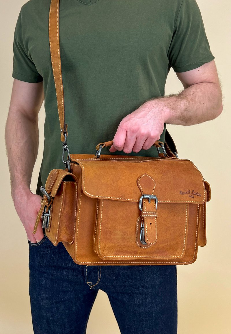 Ágil y cómodamente colocada - ¡nuestra bolsa para manillar "Gabriel"! Elegante y funcional, "Gabriel" te ayuda a ir de A a B. Esta solución 2 en 1 como bolsa para manillar y bandolera es rápida de colgar al hombro y fácil de fijar a tu bicicleta gracias a la práctica placa. Así siempre estás ágil y puedes contrarrestar el molesto tráfico de la hora punta. Con su diseño retro de moda, seguro que atraerás todas las miradas. ¡La funcionalidad se encuentra con el estilo - "Gabriel"! La bolsa para manillar está hecha de cuero de búfalo de alta calidad y ofrece espacio para tu teléfono, llaves, herramientas y botella de agua. Con un práctico bolsillo con cremallera en la parte delantera para objetos más pequeños y un bolsillo interior adicional de polialgodon impermeable, tus cosas siempre estarán protegidas. El cierre de hebilla asegura que tus pertenencias estén guardadas de forma segura. ¡Única e individual - con "Gabriel"! Convierte a "Gabriel" en tu compañero muy personal. Con un grabado personalizado, le das a la bolsa un toque único que la convierte en una verdadera pieza única. Ya sea para el trabajo o en un paseo en bicicleta - ¡con "Gabriel" siempre vas bien equipado! Variante: Bolsa para bicicleta + adaptador para manillar, Correas: Cinturón, Cierre: Cierre de correa, Patrón: Color liso, Detalles: Hebilla, Volumen: 7 l en talla única