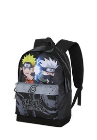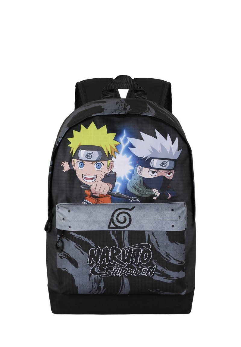 Mochila negra con los personajes de Naruto y Kakashi. Hecha de material duradero, presenta colores vibrantes, con un logotipo prominente de Naruto Shippuden.
