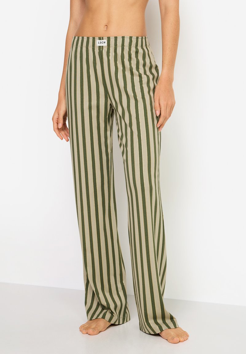 LSCN BY LASCANA - Pantalón de pijama - dunkelgrün-gold-gestreift