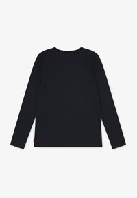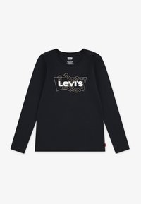 Camiseta negra de manga larga con cuello redondo, con el logotipo blanco de "Levi's" y un diseño de herradura bordado en el pecho.