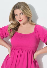 T-SHIRT, A-LINIE, GESMOKTES TOP, HALBARM - Blusa - bold pink