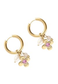 BOTANICAL STATEMENT WITH FLOWER AND RHINESTONE - Pendientes - goud verguld stainless steel