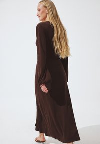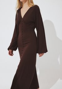 BALLOON SLEEVE BUTTON - Vestido largo - brown