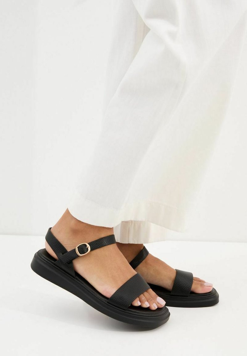 WIDE FIT FLAT BUCKLED - Sandalias - black