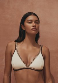 REGULAR FIT - TRIANGLE BIKINI TOP . - Top de bikini - textured cream brown whipstitch