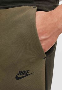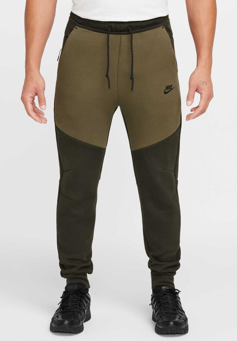 Joggers de Nike en verde olivo oscuro, con un diseño de paneles contrastantes, cintura elástica con cordones, bolsillos laterales y puños de canalé.