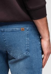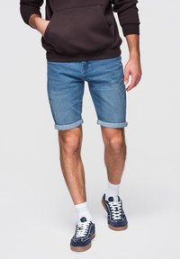WITH ROLLED-UP - Shorts vaqueros - blue