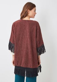 TIPO PONCHO CON FLECOS - Chaqueta de punto - granate