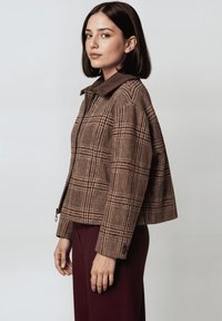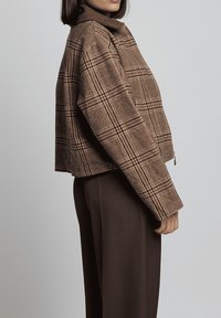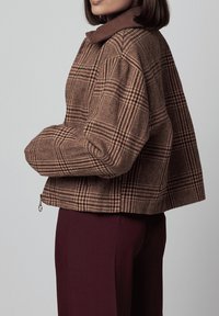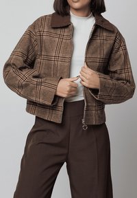 ESTAMPADA DE CUADROS CON CREMALLERA Y CUELLO EN CONTRASTE - Chaqueta de entretiempo - marron