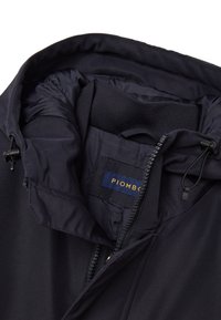 La chaqueta acolchada negra de la línea PIOMBO ofrece comodidad y calidez. El cierre frontal con cremallera y el diseño de ajuste regular la hacen ideal para cualquier ocasión, perfecta para combinar con looks de otoño e invierno. Los bolsillos frontales y la capucha aseguran comodidad y practicidad.