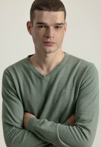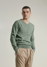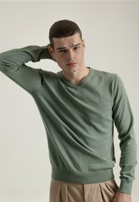 BÁSICO CUELLO PICO - Jersey de punto - verde claro
