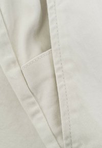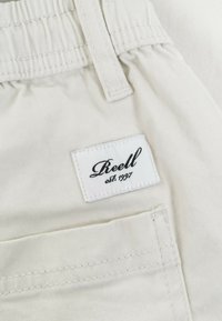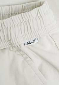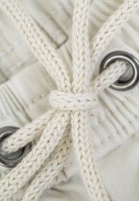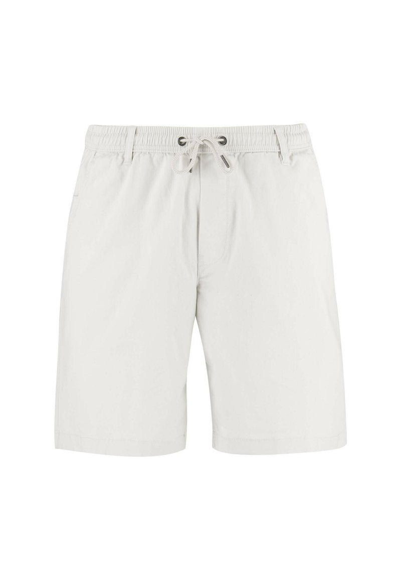 Shorts con cintura elástica blanca, cierre con cordón y bolsillos laterales, de longitud hasta la rodilla, estilo casual.