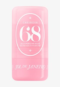 Bálsamo de perfume en gel Cheirosa 68 rosa con texto blanco y marca Sol de Janeiro en el envase.