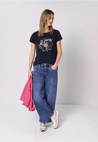 KURZARM FLORALEM ARTWORK - Camiseta estampada - shadowed navy