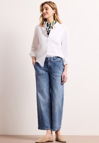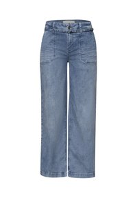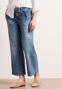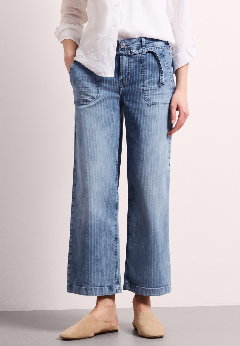 Wide Leg - Loose Fit - Mid Waist - striped look - Pernera ancha - mid blue striped wash