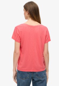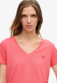 EMBROIDERED V NECK - Camiseta básica - spiced coral