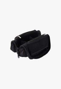 Abre la cremallera y baja los laterales. Coloca el maquillaje, brochas y otros elementos esenciales en el compartimento principal, ajustando los separadores móviles según sea necesario. Guarda artículos más pequeños como horquillas o esponjas de belleza en los dos bolsillos de malla con cremallera en los laterales.