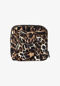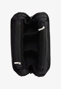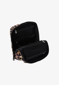 Mide 18 x 7 x 20 cm y cuenta con dos separadores móviles en el compartimento principal y dos bolsillos de malla con cremallera para artículos más pequeños.