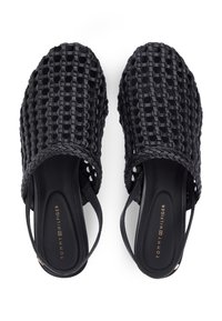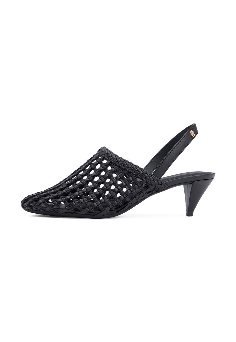 Añada una nueva textura a su armario de verano con estos zapatos de tacón, que combinan una llamativa parte superior tejida con una elegante silueta de talón abierto.Características destacadas • Parte superior de mezcla de poliuretano • Forro de piel napa • Suela de TPU • Parte superior tejida • Diseño de talón abierto • Placa con el monograma TH en la correa del tobillo • Marca Tommy Hilfiger Forma y ajuste • Puntera puntiaguda • Altura del tacón: 5 cm Composición y cuidados • 69 % poliuretano, 31 % poliéster