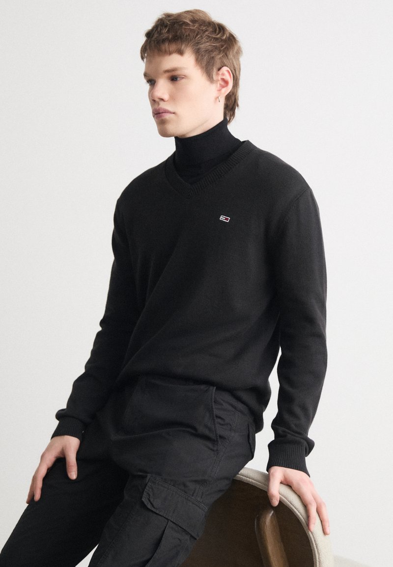 V NECK SWEATER - Jersey de punto - black