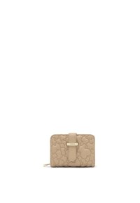 En el interior cuenta con tres compartimentos abiertos para monedas y dos ranuras para tarjetas.