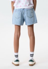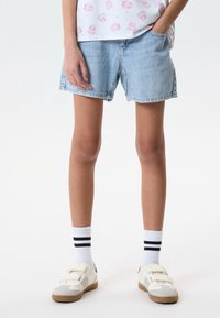 REGULAR MIT STRASSSTEINEN - Shorts vaqueros - light blue denim