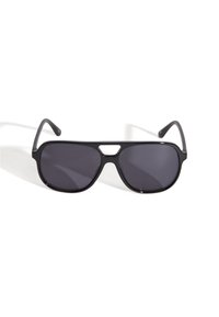 Hombre con cabello castaño que lleva gafas de sol Vans negras, camisa de botones color oliva y sudadera negra con el logo rojo de Vans, sonriendo y mirando a la derecha.