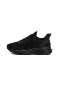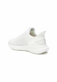 Zapatillas deportivas blancas con parte superior de malla, diseño texturizado y suela acolchada. Combinadas con joggers ligeros y elásticos con puños.
